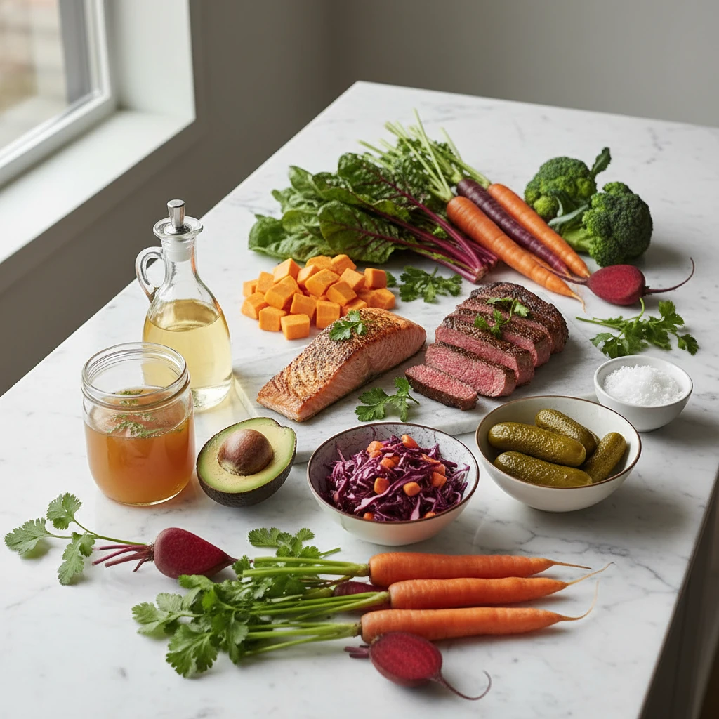 A well-stocked supply of AIP-compliant foods is helpful: coconut milk, fermented vegetables, frozen vegetables, high-quality meat and fish, and various oils should always be available. Investing in a slow cooker or Instant Pot can simplify preparation.