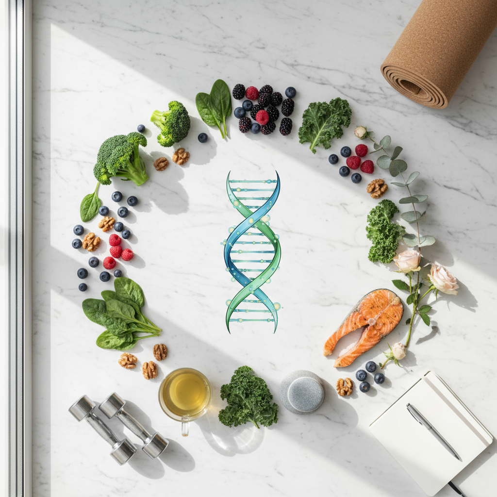 Ernährung, Bewegung, Stressmanagement, Schlaf und Umweltfaktoren wirken als epigenetische Schalter, die unsere Genexpression kontinuierlich modulieren. Eine nährstoffreiche, pflanzenbasierte Ernährung liefert die notwendigen Bausteine für gesunde DNA-Methylierung. Regelmäßige körperliche Aktivität optimiert die Expression stoffwechselrelevanter Gene. Stressreduktion und ausreichender Schlaf schützen vor ungünstigen epigenetischen Veränderungen.