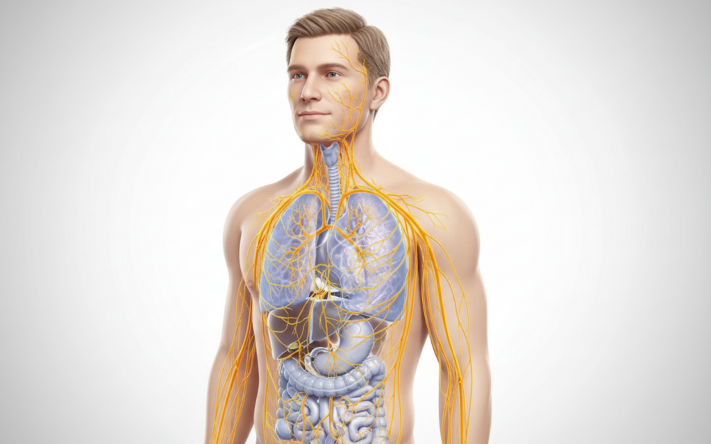 Esta amplia distribución explica por qué el nervio vago participa en tantas funciones corporales diferentes, desde la formación de la voz hasta la frecuencia cardíaca y el movimiento intestinal.